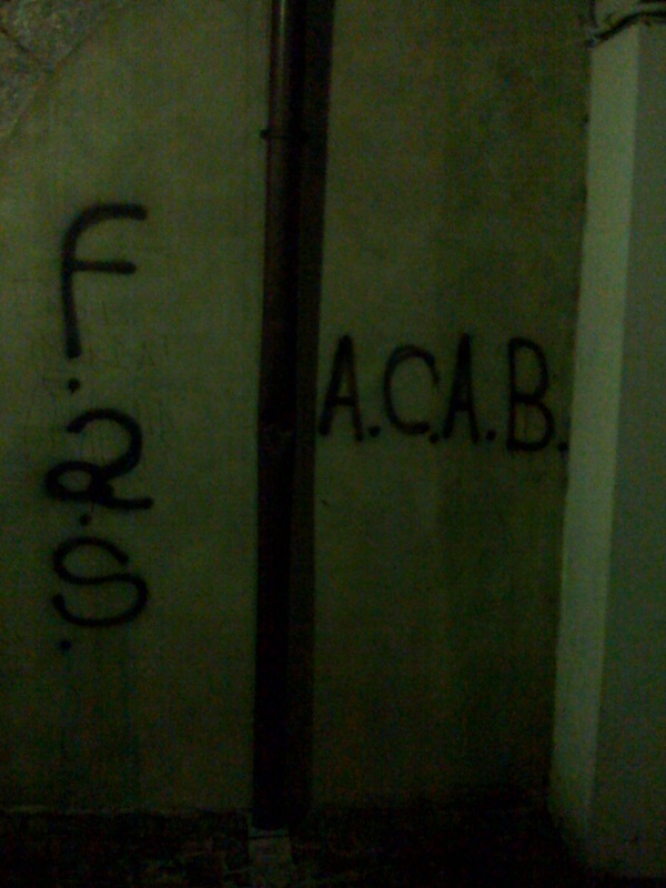 e’ vergognoso che le nostre belle citta’ vengano inbrattate da nostri stessi concittadini con queste scritte stupide e inutili.