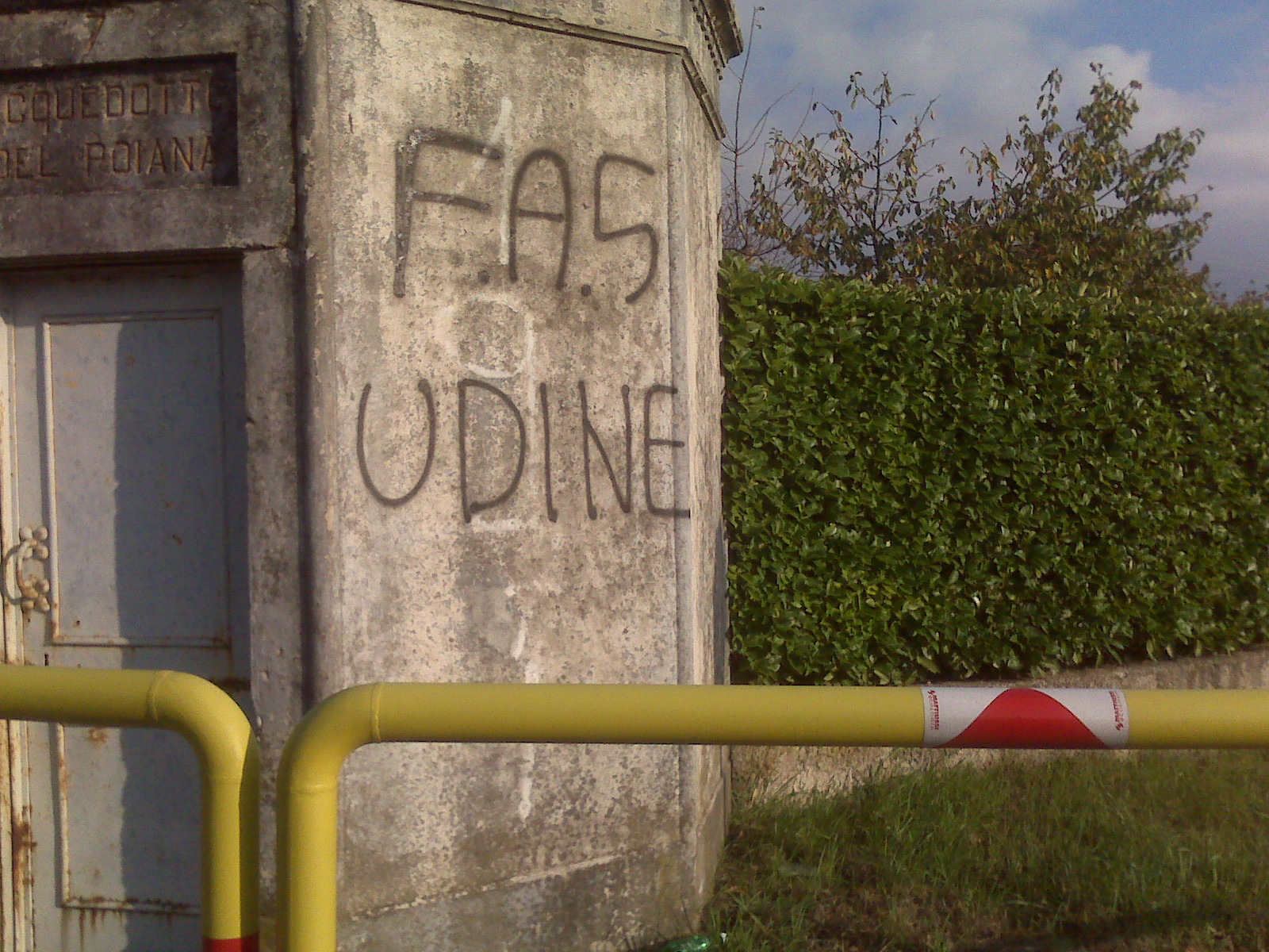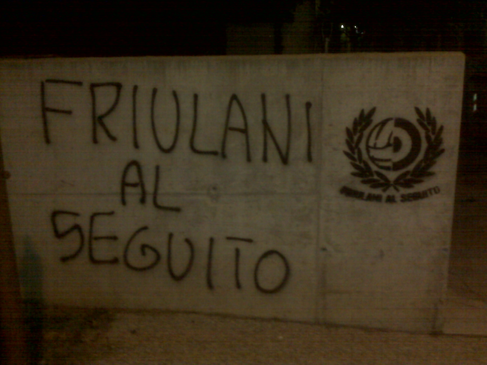 In questo periodo sui muri dei Comune di Cividale del Friuli, Premariacco, Remanzacco e mi fermo quà, stanno comparendo delle orrende (nel senso che sono pure fatte male) scritte fatte da alcuni amanti del calcio e conosciuti come Friulani al Seguito… Io capisco che bisogna esprimere il proprio amore per il calcio in ogni forma e luogo possibile ma l’indecenza e la deturpazione del paesaggio devono rimanerne fuori.